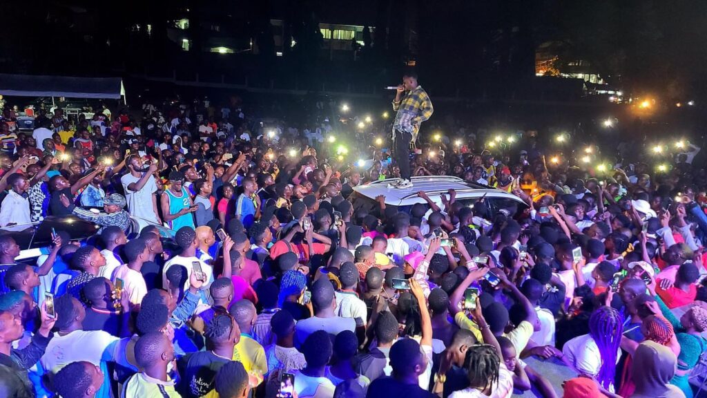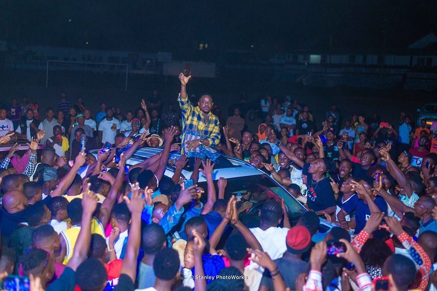 fans couldn't let me reach the stage, so i had to perform on the car.